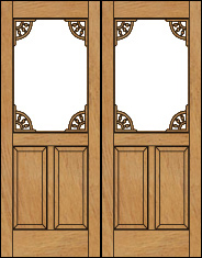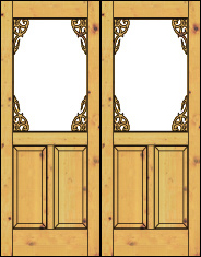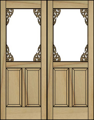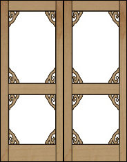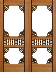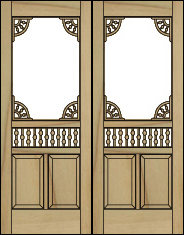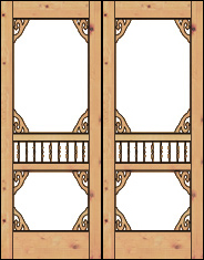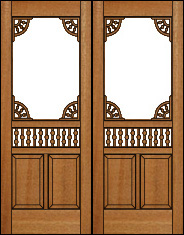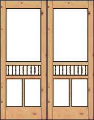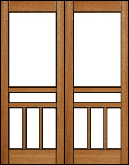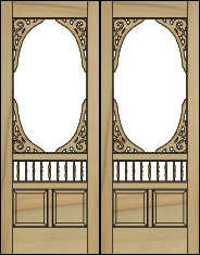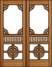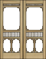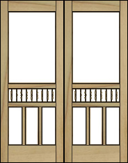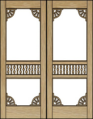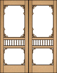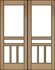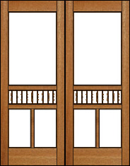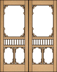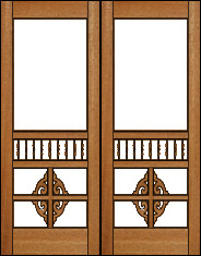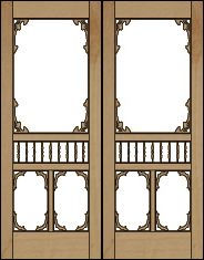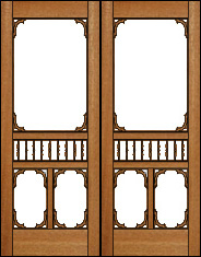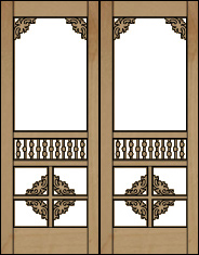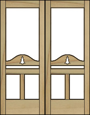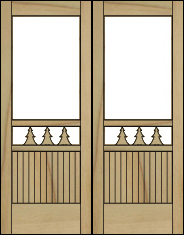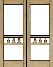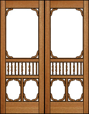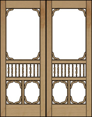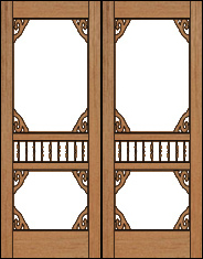 Create a distinctive look for your french exterior doors by adding a signature solid wood double screen and storm door system that compliments your entrance and adds curb appeal to your home. Our french style wooden screen doors can be custom made to compliment your existing entry doors. Removable screens allow you to install our interchangeable storm insert for the winter months, converting your beautiful screen door design into a protective storm door system. Our double or commonly called, french style screen and storm doors come equipped with your choice of a flat or T astragal to seal the center seam between each door. We also sell double door hardware kits to make your installation a breeze. We can custom size your stile and rails to align with the existing component sizes of your french exterior door. Browse through our example designs below and feel free to speak or chat with our design staff to create the perfect double screen door unit for your home. We look forward to working with you!