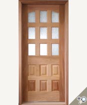 Exterior Stained Glass Door Features: Real solid wood stile & rail construction. Standard 1 ¾ thick, 2 ¼ premium thickness upgrade available. Triple pane insulated stained glass units in custom designs. 1 5/8 thick raised panels. Hinge finish is your choice. Entry units are exterior pre-hung with 4 x 4 sq. corner ball bearing hinges on weather-stripped rabbeted jambs with an adjustable mahogany threshold. Pair with any sidelight or transom combination to build a custom entry unit design for your home.