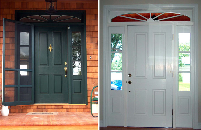 Exterior Transom Features: ½ thick Clear insulated tempered glass is included as a standard option. Low E glass, argon filled units and decorative patter glass is available on most any transom. Our exterior transoms are a full 1 ¾ thick and can be increased to 2 ¼ if desired. Any design can be produced as slab only or framed with a jamb. Brick molding is optional along with interior casing packages.