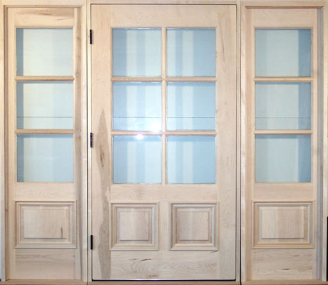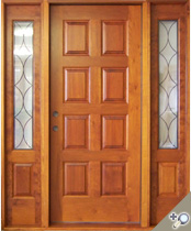 Entrance Unit Features: Handcrafted solid wood construction built to 1 ¾ thick as a standard and upgradeable to 2 ¼ thick as a premium option. Raised panels are 1 5/8 and up to 2 inches thick on 2 ¼ doors. Entry units are pre-hung using solid brass, 4 x 4, square corner ball bearing hinges. Door jambs are chosen from matching solid wood to compliment your door. We produce our very own adjustable mahogany threshold to enhance our beautiful products even more. Clear insulated tempered glass is included with several other options available in both energy efficient choices, decorative pattern glass, as well as beveled or stained glass. Designs are fully customizable and made to your exact size. Door units can be made for interior purposes as well, with non-insulated glass if you are looking to seal off a room or have a secondary entrance in a foyer location.